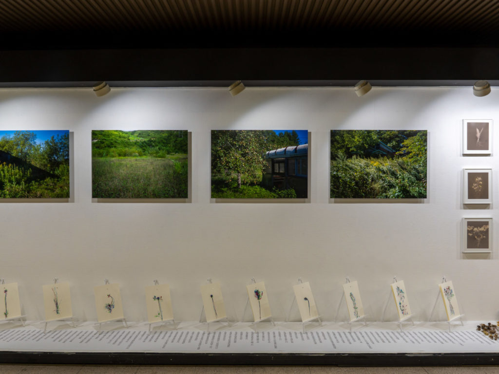 そうしたロケーションにおける会場において、「殖物の歴史」と題するシリーズの近年取り組んでいる北海道の入植地と、リフレーミングした帰化植物をガラスケースの中に展開します。