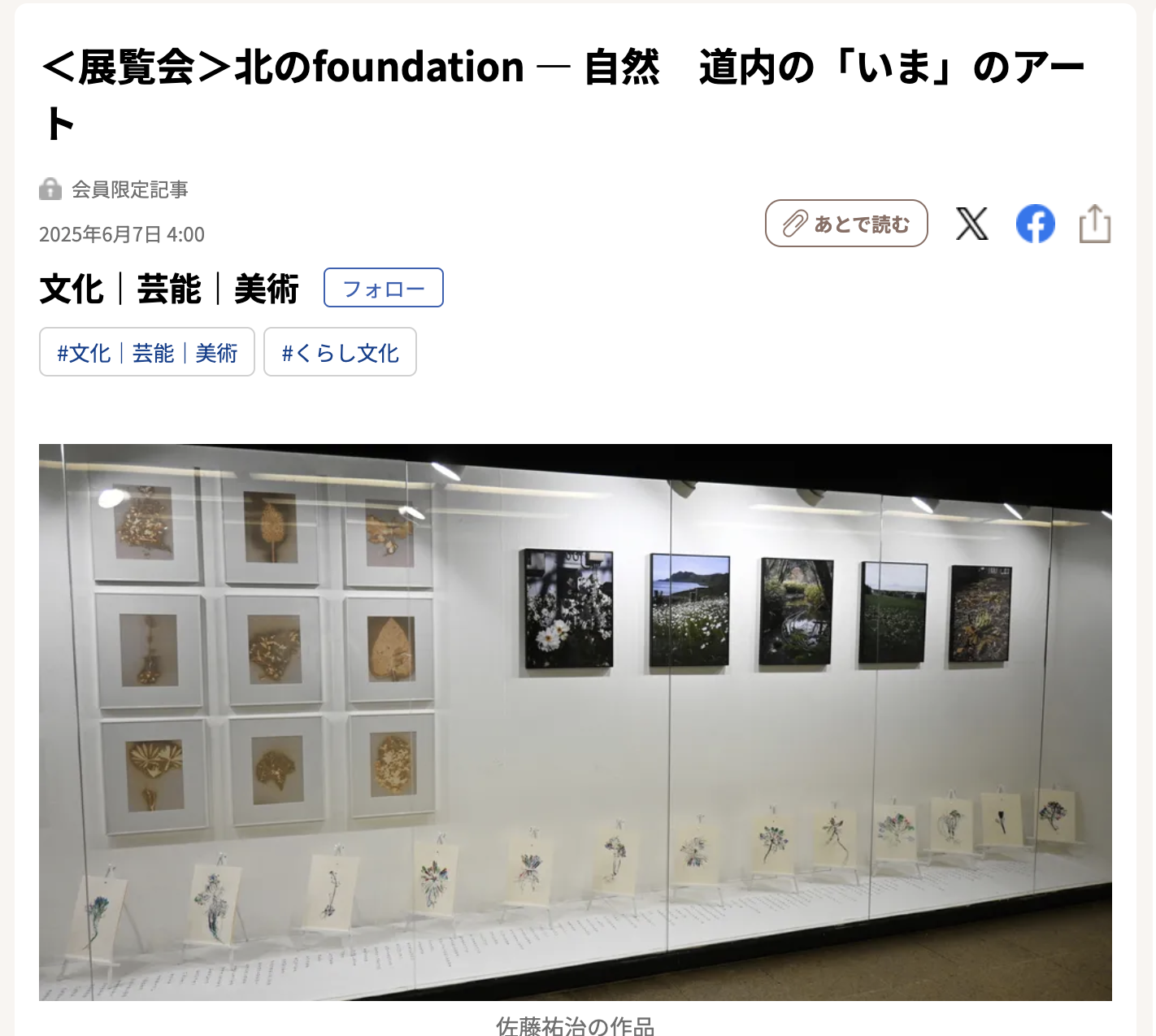2025年5月31日から 8月6日まで、札幌市内500m美術館において開催されていた「北のfoundation ─自然」について、6月7日付けの北海道新聞に記事が掲載されました。
