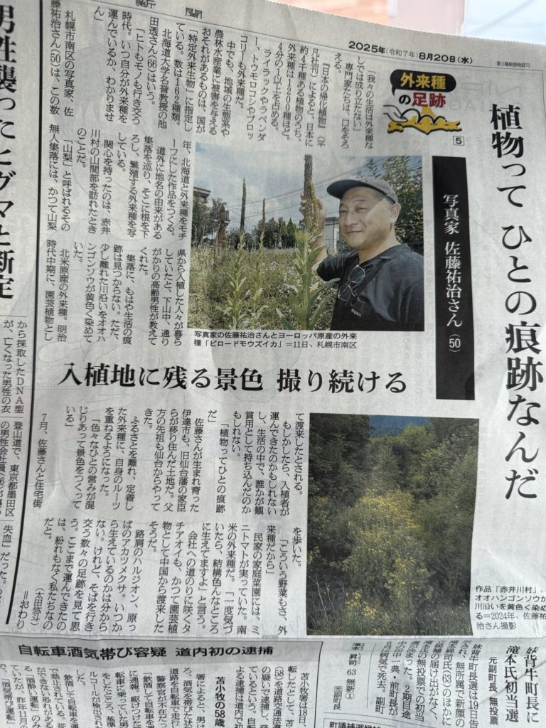2025年8月20日の北海道版の朝日新聞朝刊にて、太田記者による連載「外来種の足跡」の第五回目の記事のなかで写真付きで活動を取り上げていただいています。