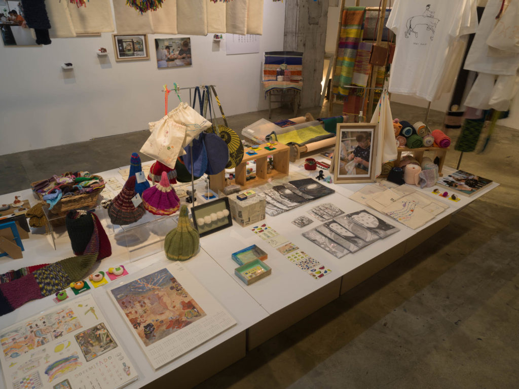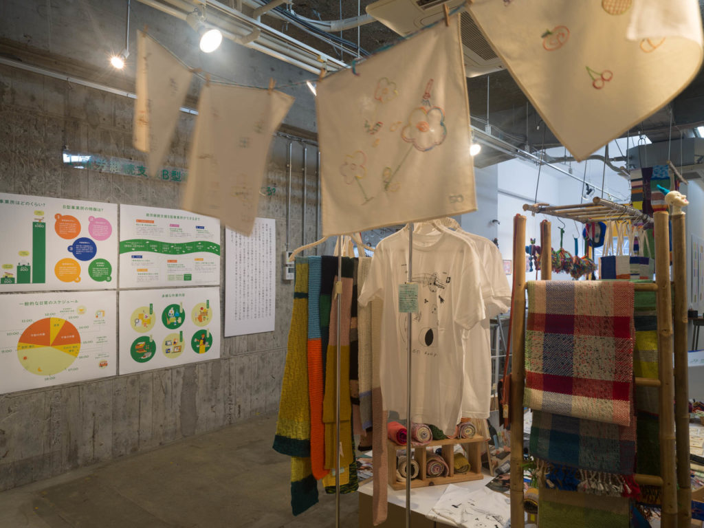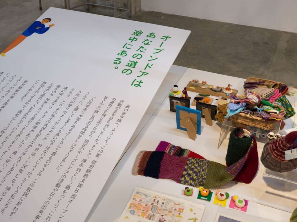 OpenDoorのこと、就労継続支援B型のことや、就労を通じて制作された数々のアイテムが展示、販売されています。